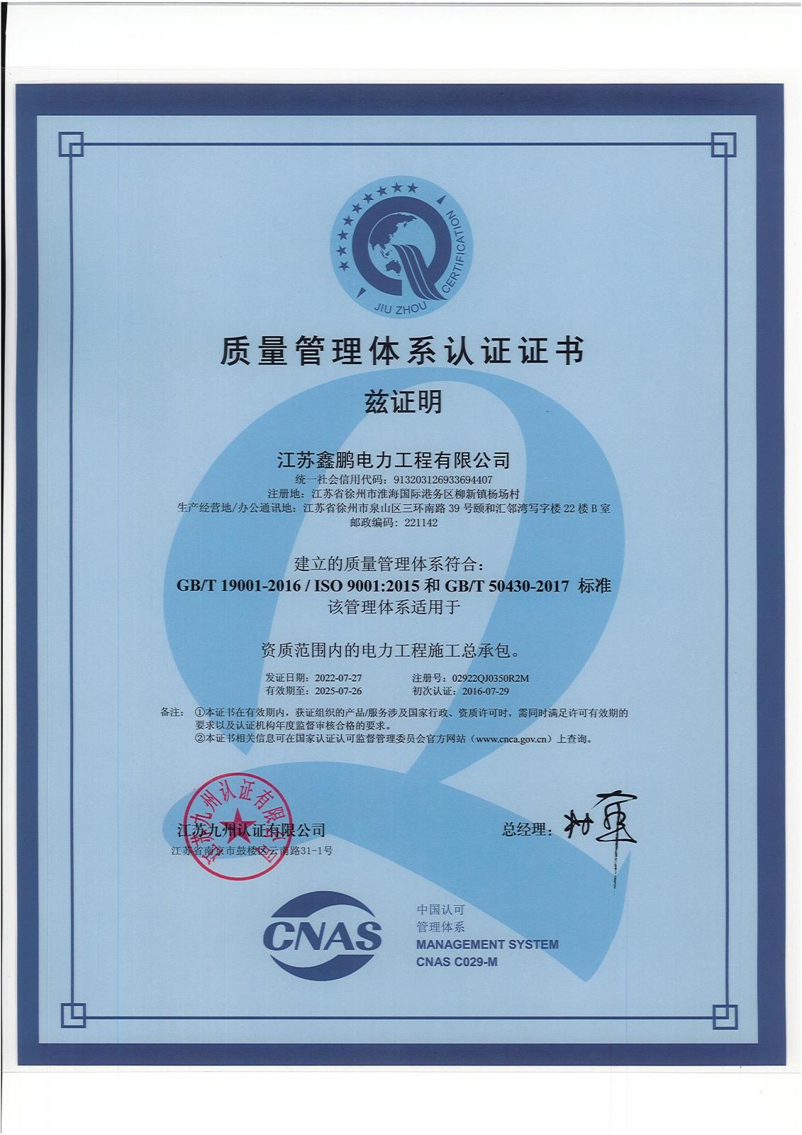 江蘇鑫鵬電力工程有限公司成立于2009年,位于素有“五省通衢”之稱的“古彭”徐州。注冊(cè)資金6000萬元,占地50畝。